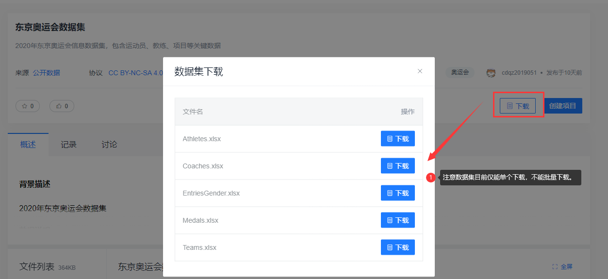 注意:为了保障下载的畅通,目前下载数据集只能一次下载数据集中的某一个文件。